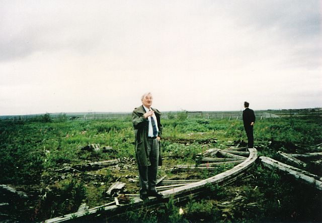 - Horst Hennig auf den Überresten der Küchenbaracke von Lager Nr. 10/Schacht 29 am 1. August 1995 beim Besuch anlässlich des 42. Jahrestages der Niederschlagung des Aufstandes.